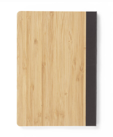 Oryginalny i wyjątkowy notes formatu A5. Okładka wykonana z bambusa zakończona na brzegu brązową taśmą, która stanowi ciekawy i ozdobny element. Kartki w notesie wyprodukowane zostały z papieru kamiennego. Taki papier jest wyjątkowo odporny na rozdarcia oraz na wilgoć. Posiada 80 gładkich kartek. Zapakowany w woreczek biodegradowalny.