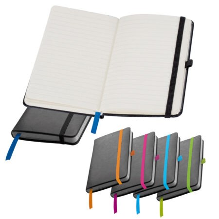 Fajniutki notatnik w rozmiarze A6. Posiada 80 kartek w linie i zakładkę-tasiemkę. Okładka wykonana z ekoskóry. Notes zamykany elastyczną taśmą. Polecamy!
