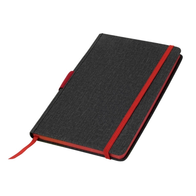 Fajny notes formatu A5 z elastycznym zamknięciem na gumkę i szlufką na długopis.
