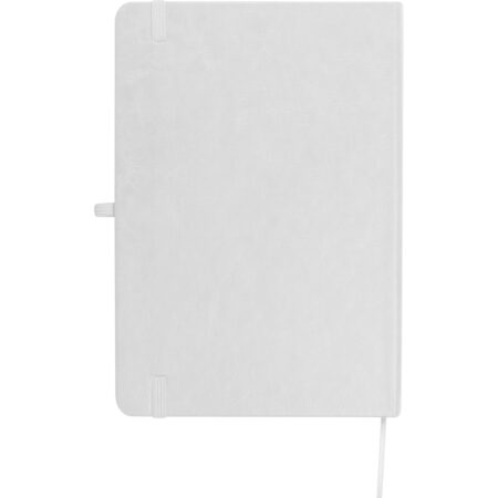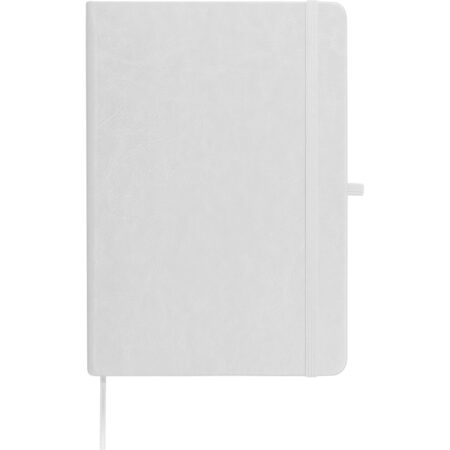 Notes o formacie A5, z okładką wykonaną z PU pochodzącego z recyklingu, posiada 192 strony w linię, zamknięcie na gumkę, materiałową zakładkę i pętelkę na długopis
