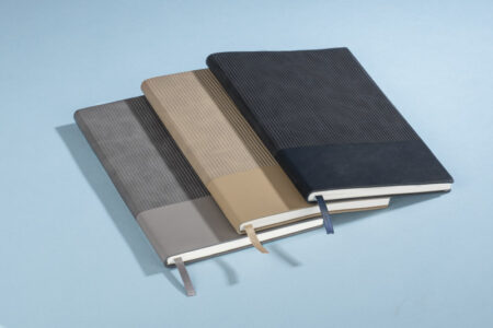 Notes FLAF w formacie A5 występuje w 3 stonowanych i eleganckich kolorach. Notes w miękkiej, okładce z łączonych materiałów: ekoskóry i imitacji sztruksu, który jest niezwykle przyjemny w dotyku. Zawiera 80 kartek w kropki. W środku dodatkowo praktyczna wstążeczka – zakładka.