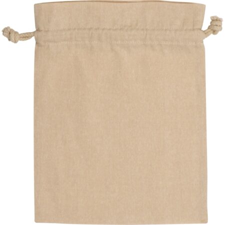 Woreczek bawełniany wykonany z bawełny pochodzącej z recyklingu, z certfikatem Oeko-Tex® STANDARD 100, gramatura 110g/m². Woreczek zamykany za pomocą sznureczków ściągających.