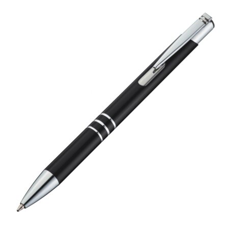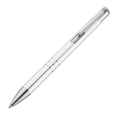 Metalowy zestaw piśmienny składający się z długopisu z niebieskim wkładem oraz ołówka automatycznego. Całość umieszczona w etui.