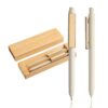 Zestaw piśmienniczy wykonany z drewna bambusowego, z długopisem piszącym na niebiesko i ołówkiem automatycznym.