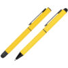 Zestaw piśmienny w modnych, intensywnych kolorach, składający się z długopisu oraz pióra kulkowego. Obydwa artykuły posiadają przyjemną w dotyku powierzchnię soft touch i czarne detale oraz funkcję touch pen. Długopis wyposażony w niebieski wkład (0,7 mm), a pióro kulkowe w niemiecki wkład Schneider piszący na niebiesko (0,5 mm). Całość zapakowana w eleganckie etui prezentowe z certyfikatem autentyczności Pierre Cardin.