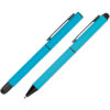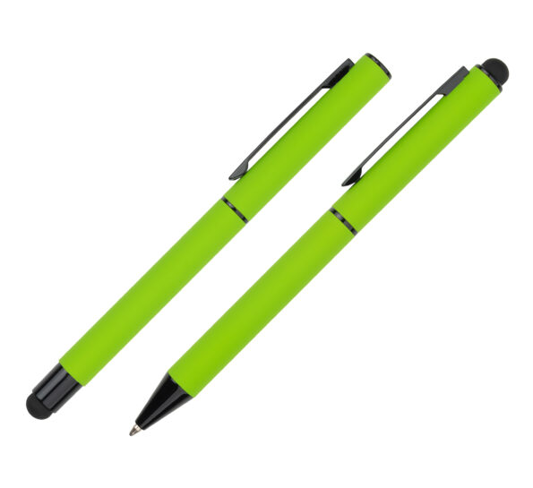 Zestaw piśmienny w modnych, intensywnych kolorach, składający się z długopisu oraz pióra kulkowego. Obydwa artykuły posiadają przyjemną w dotyku powierzchnię soft touch i czarne detale oraz funkcję touch pen. Długopis wyposażony w niebieski wkład (0,7 mm), a pióro kulkowe w niemiecki wkład Schneider piszący na niebiesko (0,5 mm). Całość zapakowana w eleganckie etui prezentowe z certyfikatem autentyczności Pierre Cardin.